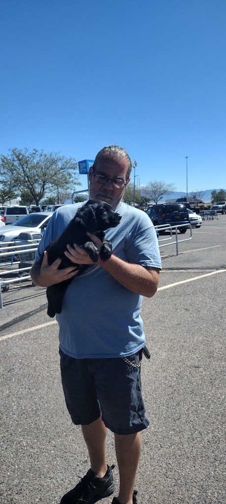 Some may know a couple weeks ago we lost Litha. She was a wonderful dog and loved everyone.. Today we went to Walmart and someone had puppies, we usually don’t look, but for some reason it felt like we needed to. We walked over to look at the puppies and they had one that looked a lot like Litha, we debated on getting him, as we didn’t want a puppy nor thought we were ready for a new dog. But for some reason we picked the pup up and felt like he belonged, after a few minutes of talking we decided to take him.. Now we are home, the first thing he did was lay by the water bowl, which was Lithas favorite place as a puppy.