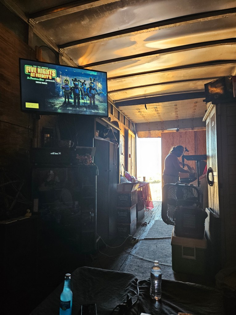 Hanging out with Advocatus Diaboli and the Grim Leafer Band , in the Greenroom, we are enjoying few drinks, listening to some music while Brent’s cooking some pork chops, After we eat we plan on watching Five Nights at Freddy’s.
