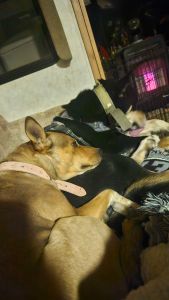 Persephone belongs to our daughter but spends most of her time with us. Rescued from a local animal shelter, she prefers the company of the pack while her mom is at work.