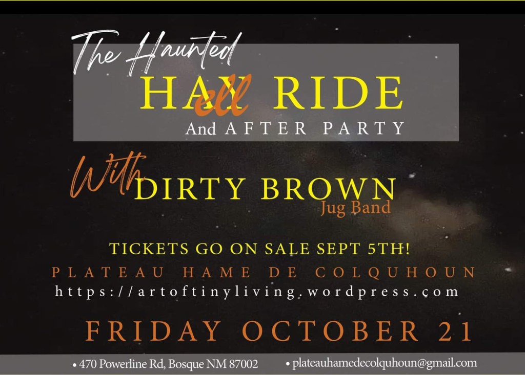 2022 Haunted Hay (Hell) Ride and After Party with the Dirty Brown Jug Band. On October 21st You can purchase tickets for one or both events. Haunted Hay rides start at 6pm and go to 10pm. Ticket sales for Hay Ride ends at 9pm, After party tickets go until 10:30 pm.