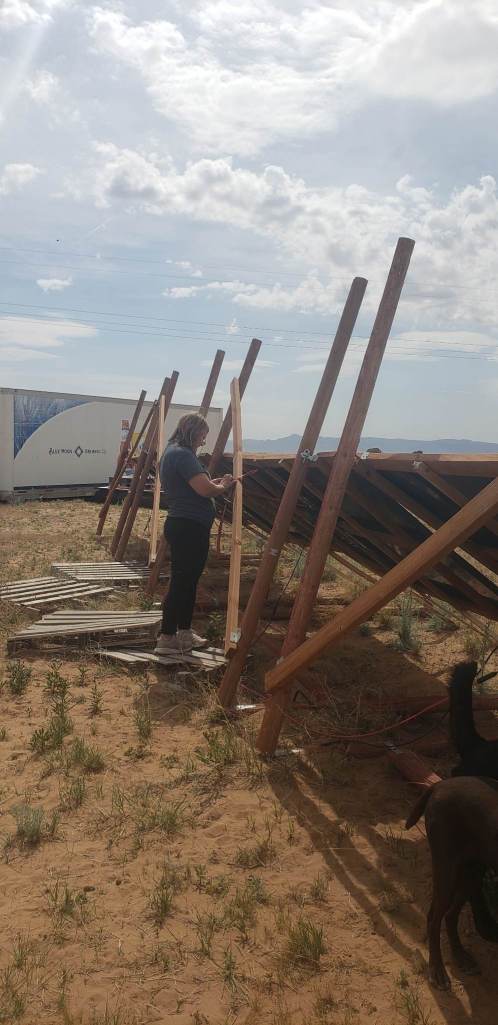 Dec of 2019 our family came to New Mexico to help a friend who lives on a ranch that has been in her family for almost 200 years, by Ruidoso. We had met this lady at a festival she attended and we site managed at. She had asked us to come spend the winter at her place, help clean it up, and build showers etc. so that she could hold festivals. We did come and did a lot of working clearing trees, barbwire, build a water tower for the shower. During our stay we found land we now live on Plateau Hame De Colquhoun . This weekend we are camping at our friends place, helping her with a few things and enjoying tent camping in (feels like) 19 degree nights at over 7000′ .