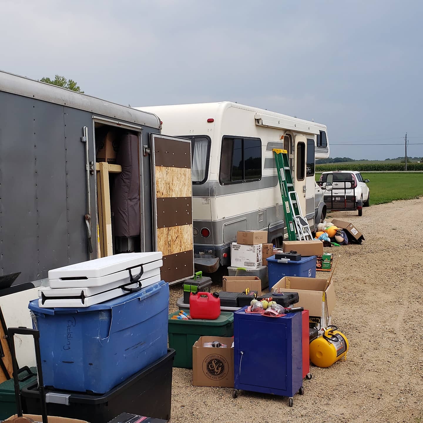 Downsizing done, yard sale done and left overs donated! We have been boondocking at a friend’s house the last three days. It had been fun hanging out getting and getting hair cuts. Since we will be taking the RV in tomorrow to get tires we figured we boondock someehere we could drop off the trailer. Then Tuesday we head back to the container and pack up the remaining items, before heading back to the Tiny House. From there we plan on starting on the wiring and putting the new floor into the RV!