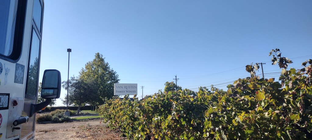 We’ve been here at the Cal Expo RV Park since yesterday morning. But before getting here we had a wonderful night at Van Ruiten Family Winery in Lodi. Great wine, wonderful atmosphere, if you’re ever in Lodi we recommend you stop in!
