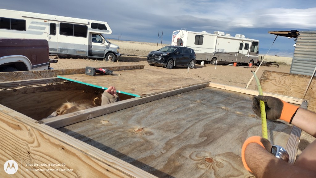 To stay with our Modern Pioneerism this building was originally a shipping box, that we have fixed up, reinforced it with osb, and redoing a few of the frame pieces.